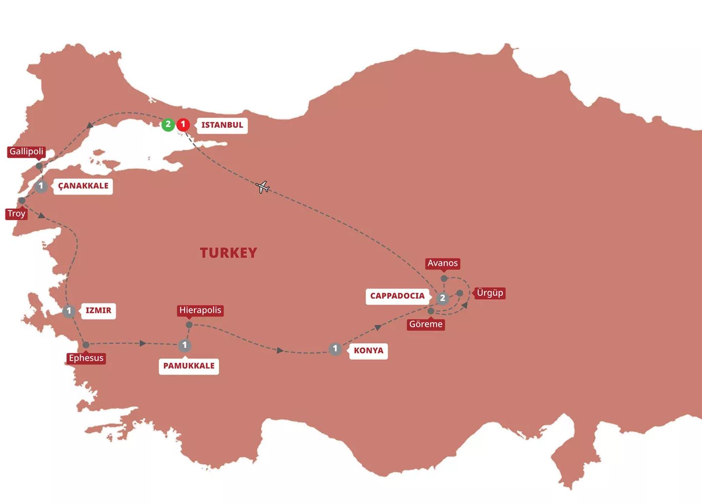 10-day Turkey Highlights from Istanbul: Visit 14 cities including Ephesus & Cappadocia. Stroll the Grand Bazaar and ancient East-West trade routes.